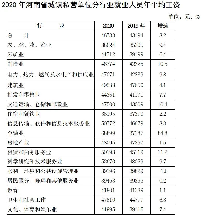 河南省城镇就业人员2020年平均工资新鲜出炉啦!