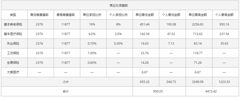 2018商丘社保缴费基数与比例.